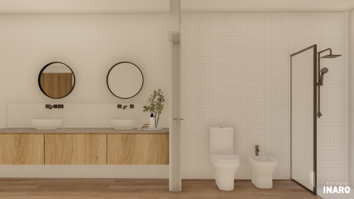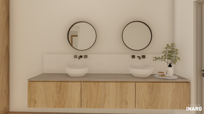 Además, hemos incorporado dos patios internos en el diseño de la vivienda. Estos patios no solo brindan un ambiente agradable y luminoso, sino que también permiten la entrada de luz natural y ventilación, mejorando la calidad del ambiente interior y reduciendo la dependencia de sistemas artificiales.
